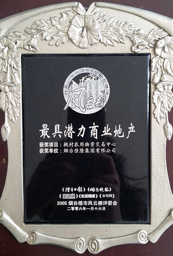 煙臺桃村農(nóng)用物資交易中心是由煙臺佳隆集團開發(fā),項目總建筑面積15萬平方米,總投資2.5億元,分為兩期建設,包括商業(yè)中心、會展中心、倉儲中心、綜合大樓等設施,被省市鎮(zhèn)三級政府列為重點開發(fā)項目,公司共計員工五十多人。一期5.4萬平方米的商業(yè)中心已經(jīng)建成并投入使用,共擁有獨立產(chǎn)權商鋪435套,市場內(nèi)設有化肥、農(nóng)藥、獸藥、種子、農(nóng)機及配件、五金交電、日用雜品、農(nóng)用地膜、餐飲、娛樂、賓館等多個功能區(qū),是膠東半島唯一、山東省最大的農(nóng)用物資集散地,填補了膠東半島無大型農(nóng)用物資市場的空白。該項目榮獲煙臺市“最具潛力商業(yè)地產(chǎn)”獎項。